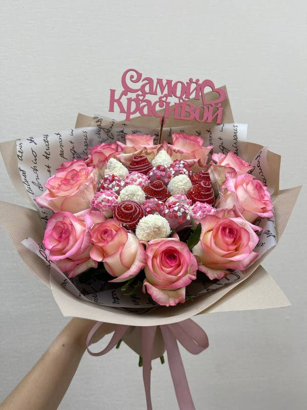 Перед отправкой мы фотографируем готовый букет и отправляем фото клиенту. Это подтверждает соответствие заказу и позволяет убедиться в качестве композиции
