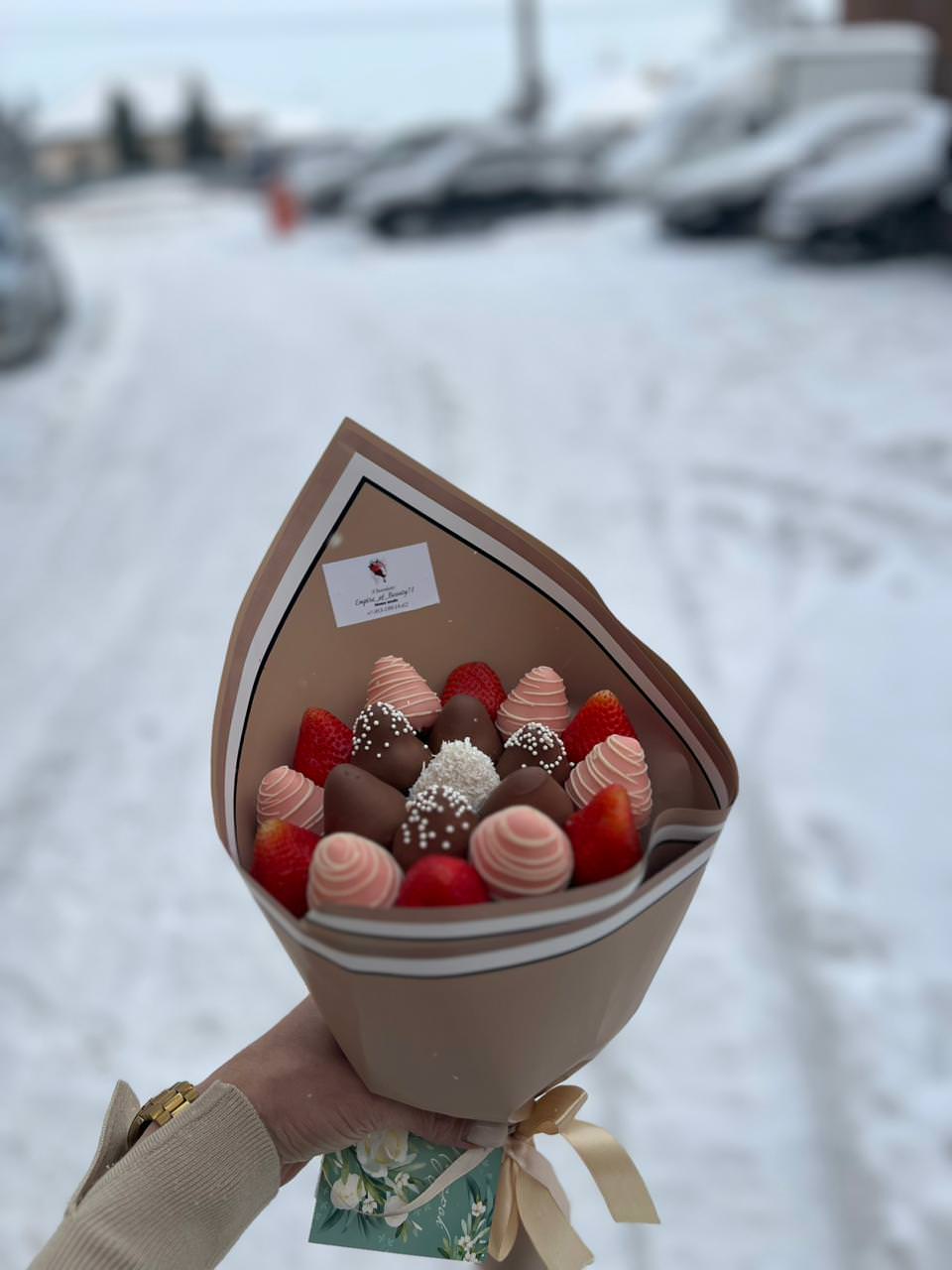 Спасибо за отличный клубничный букет на юбилей! Хорошо сработали!